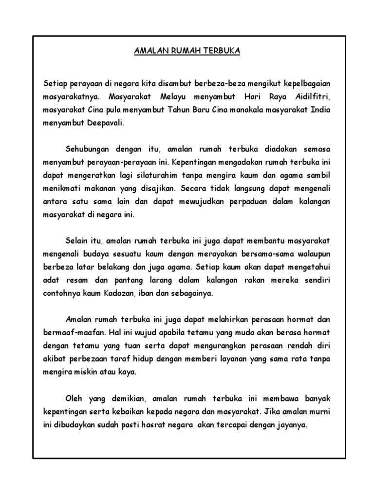 Karangan Bahagian A Kebaikan Amalan Rumah Terbuka Kebaikan Amalan Berbelanja Secara Berhemah from imgdokumentips Contohnya hari raya aidilfitri tahun baru cina dan deepavali. Admin blog ini akan berusaha untuk mengemaskinikan bahan. Tegasnya amalan rumah terbuka dapat mewujudkan masyarakat yang harmoni tanpa perasaan syak wasangka.